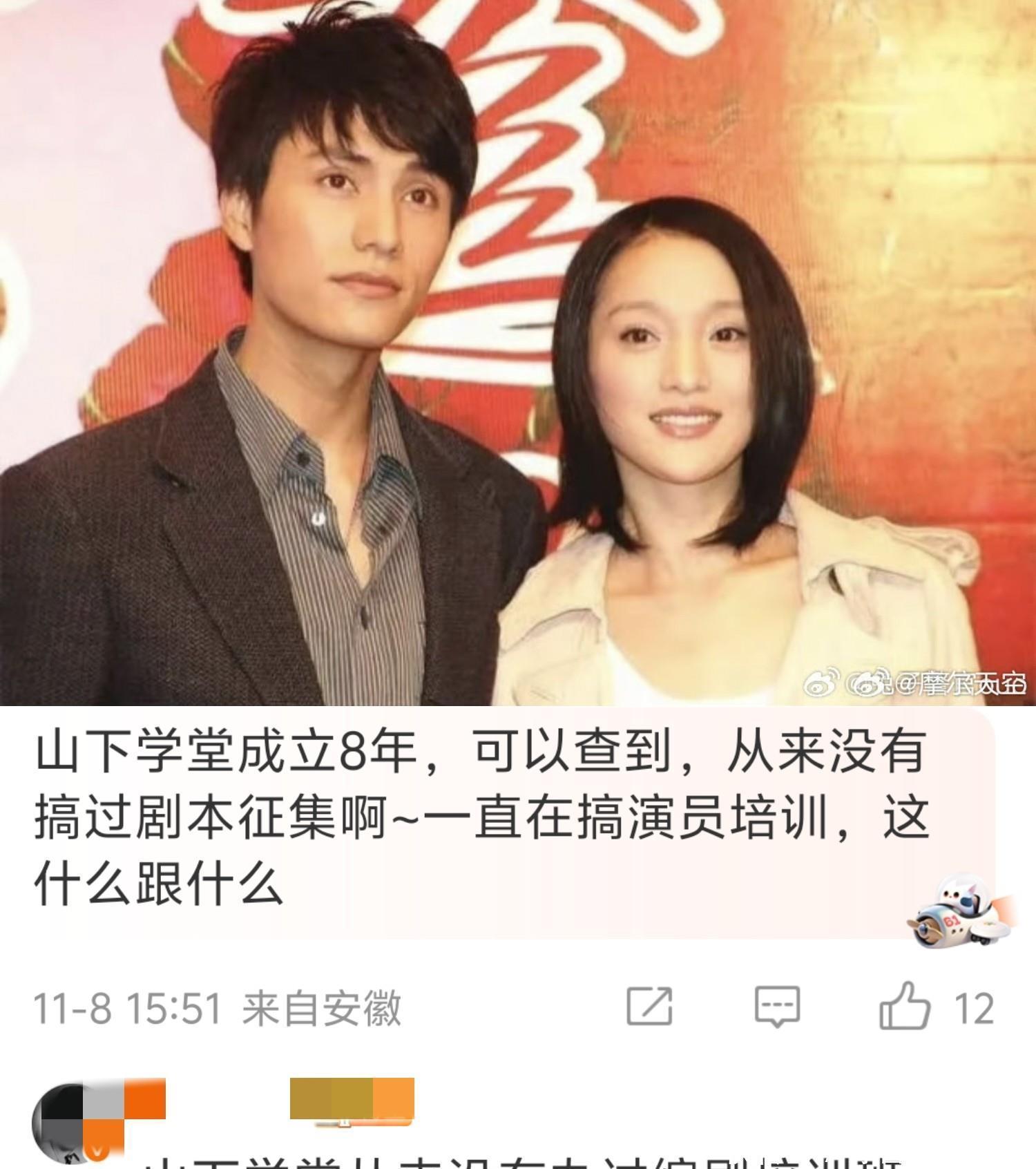 陈坤和周迅办的《山下学堂》信息都是公开可查,是一个表演培训班海越互赢,成立八年来从来没有办过征集剧本的活动。