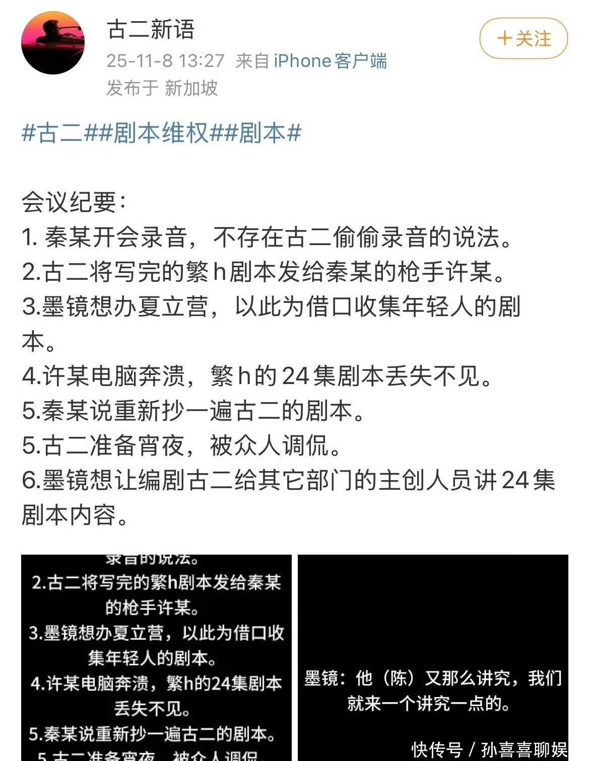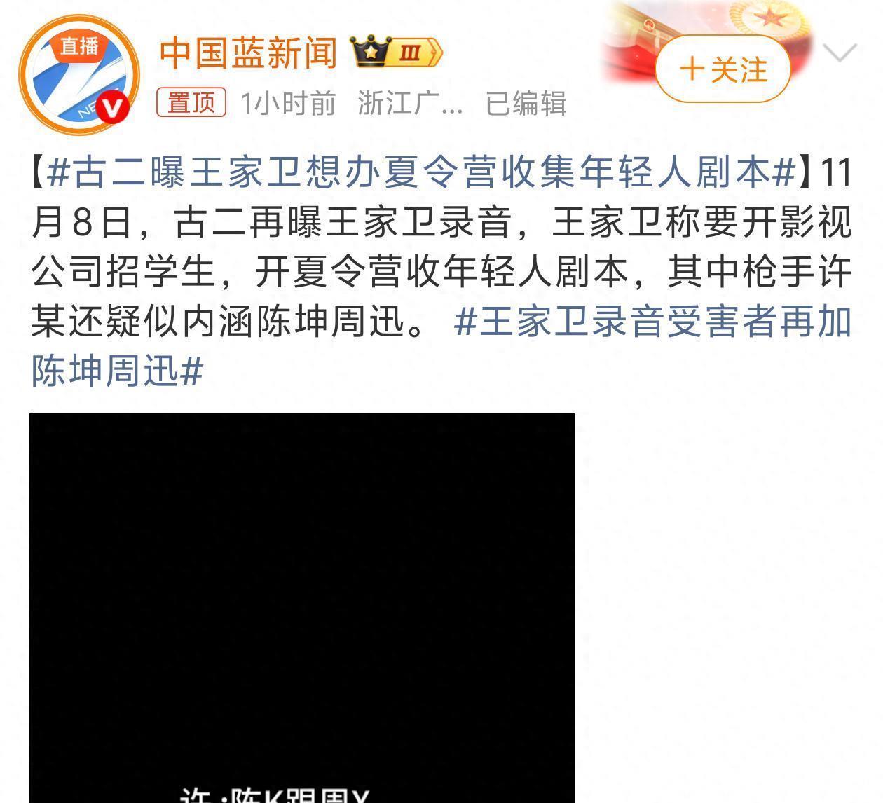 古二再次曝光王家卫录音海越互赢,受害者再加陈坤周迅两人,王家卫自己想办夏令营收集年轻人剧本,还和许思窈内涵他们两个办培训班已经骗取年轻人剧本。提到陈道明钢琴弹得很差。